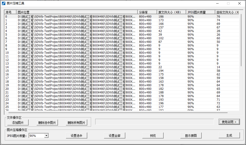 點擊“生成”按鈕,得到壓縮后的jpg格式的圖片。該例中,圖片質量設置為90%,27.9M字節的原始圖片文件,壓縮后為11.2M字節。